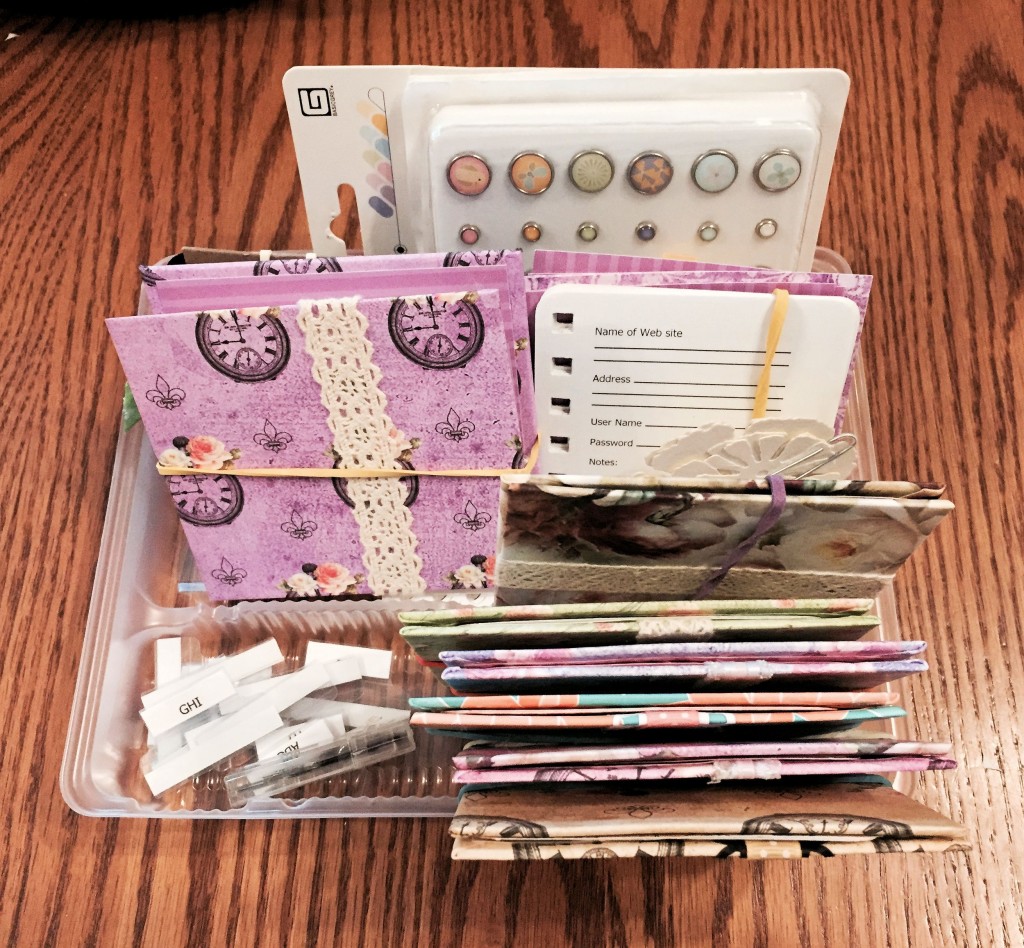 Additionally, I use a compartmentalized Oreo cookie package insert for my books and a few supplies that are “in process.†This enables me to get right to work, without a lot of preparation, when inspiration strikes.
