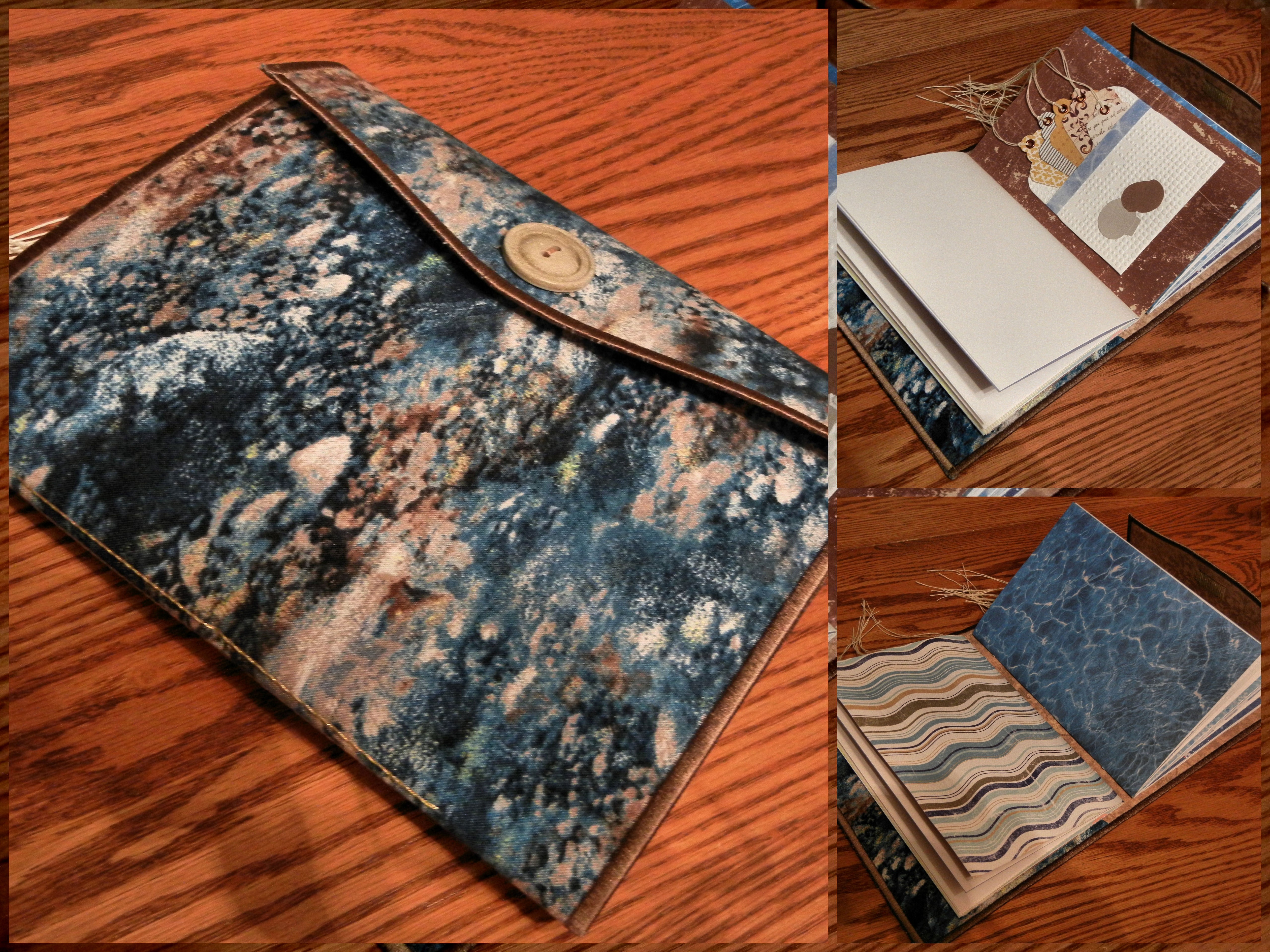 This fall I joined a new Etsy team calling itself Blogging Business Artisans, whose goal is to encourage, inspire, promote, and socialize with other creative entrepreneurs with a focus on social marketing. In case you think that means we’re all about business, let me tell you that we do have fun! This holiday season, Sharla of the Beaded Tail organized a Secret Santa exchange. We all listed our likes and dislikes to make it a little easier to put together a package for our “partner,” but still, everyone was surprised about what they received. My Secret Santa turned out to be none other than Sharla, and I sent a handmade journal to Margaret of Splendid Little Stars. ” It has a beachy/watery theme,” Margaret told me, “so I believe I will use it as a journal to record my impressions/experiences of my beach vacations.”