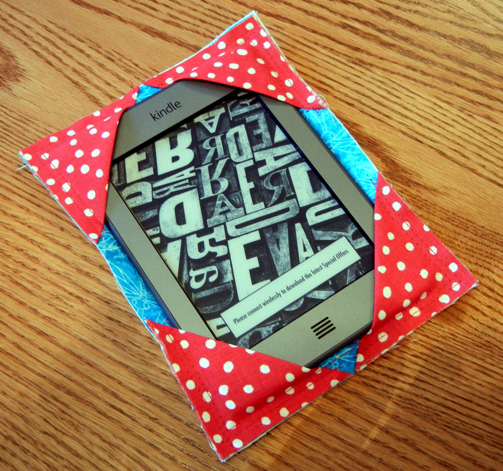 Next, I sewed corners for my Kindle Touch on the inside right page of the cover. If you baste the corners first, you can adjust them to fit your eReader.