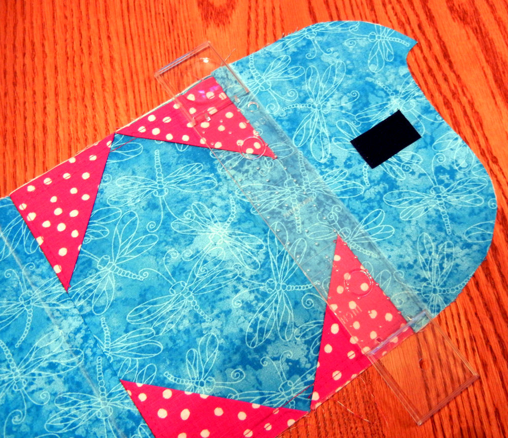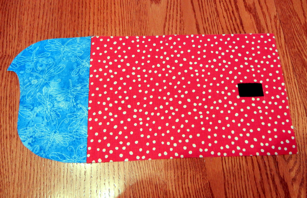 Before you can add craft-weight stabilizer to the cover, you have to sew the outside of the cover, which consists of two pieces. I added the other half of the hook-and-loop tape to the body of the cover.