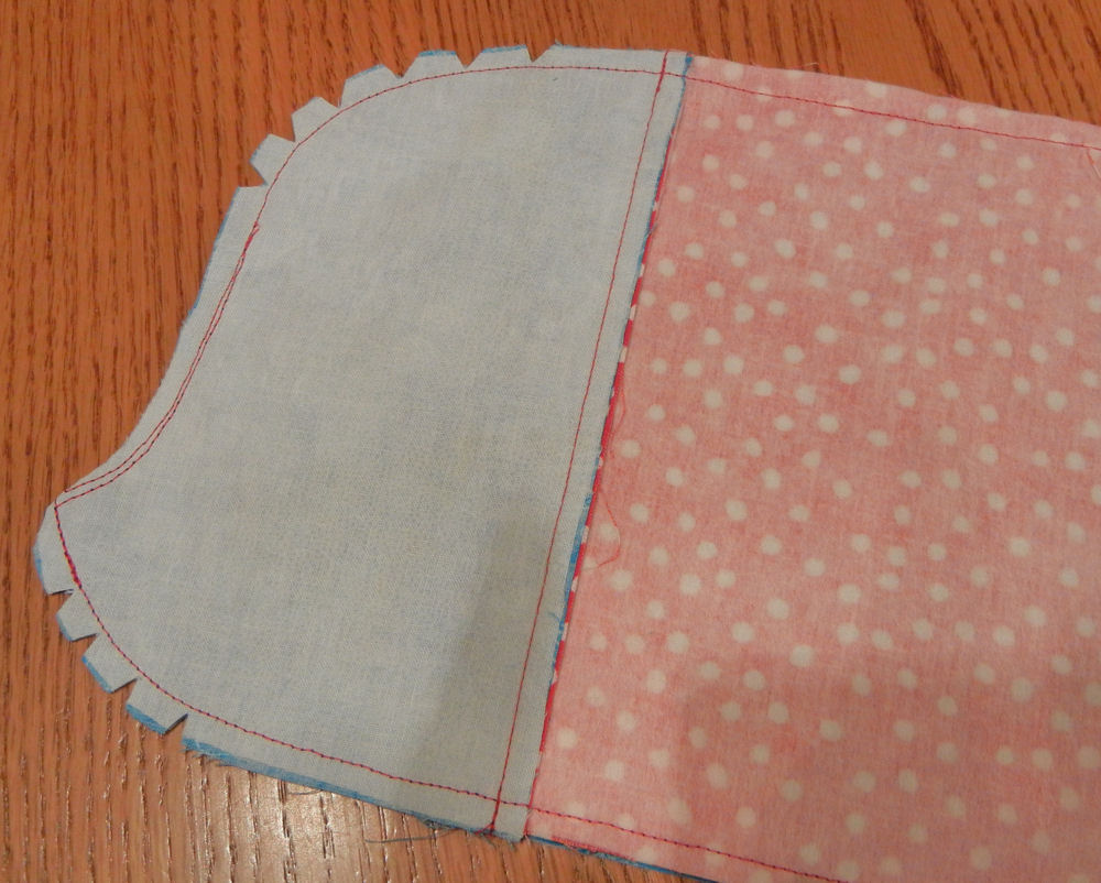 Before you can turn the cover inside out, you need to trim your corners and notch curved edges. If you don’t, your corners will be bulky, and your curves won’t be smooth.