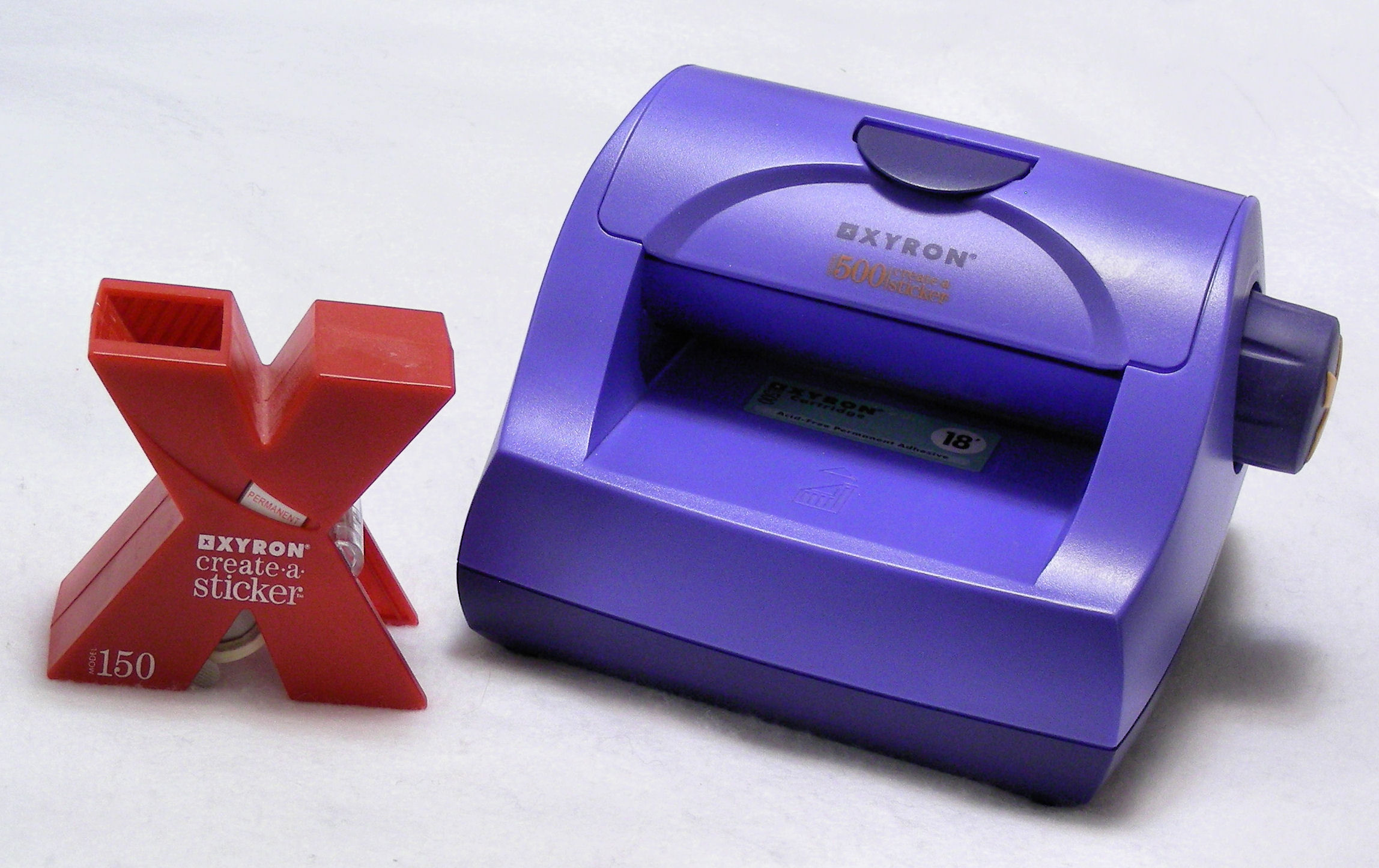 When I need to make stickers, I look no further than Xyron®. Their repositionable and permanent adhesives come in a clear roll that you insert cartridge-style in a plastic dispensing case. The smallest case is the Xyron® Create-a-Sticker Model 150; this is the one I use most often. Also available are wider cases accompanied by wider rolls of adhesive. The main drawback of a Xyron® refill cartridge is that it disappears too quickly; you only get 18-20 feet of adhesive. If you have a big and/or detailed project, plan ahead and have a refill handy. Xyron® refill cartridges are readily available at craft stores and “big box” discount chains, so they are convenient to find, and if you shop carefully you can get a good price.
