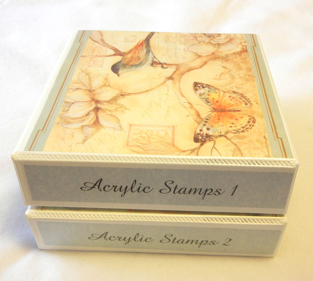Do you sometimes squeeze a lot of your supplies into a small space, only to realize that because your items are so tightly packed, you’re not able to view them easily, and thus don’t use them very often? It’s like that old adage says, “Out of sight, out of mind.” That’s how I have been feeling about my collection of clear acrylic stamps. I’ve been storing them in one of those inexpensive clear plastic shoe boxes you can buy at Target or Walmart, and though it looks nice stacked on top of other boxes just like it, I pretty much don’t even know the stamps are there.