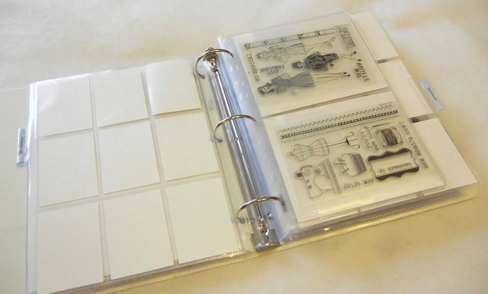 What a great idea! I have my mounted stamps all stacked (sort of neatly) in a box, but the unmounted acrylic stamps can be kind of a pain. I don’t really have enough to merit buying a whole binder (yet), but I’m sure I could come up with a way to modify this idea.