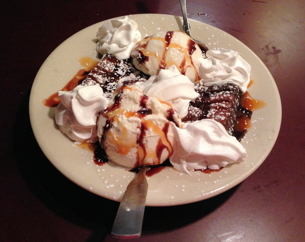 After dinner, we split a decadent brownies-and-ice cream dessert. We weren’t too worried about calories because we knew we’d be spending almost 12 hours a day on our feet for the rest of the week.