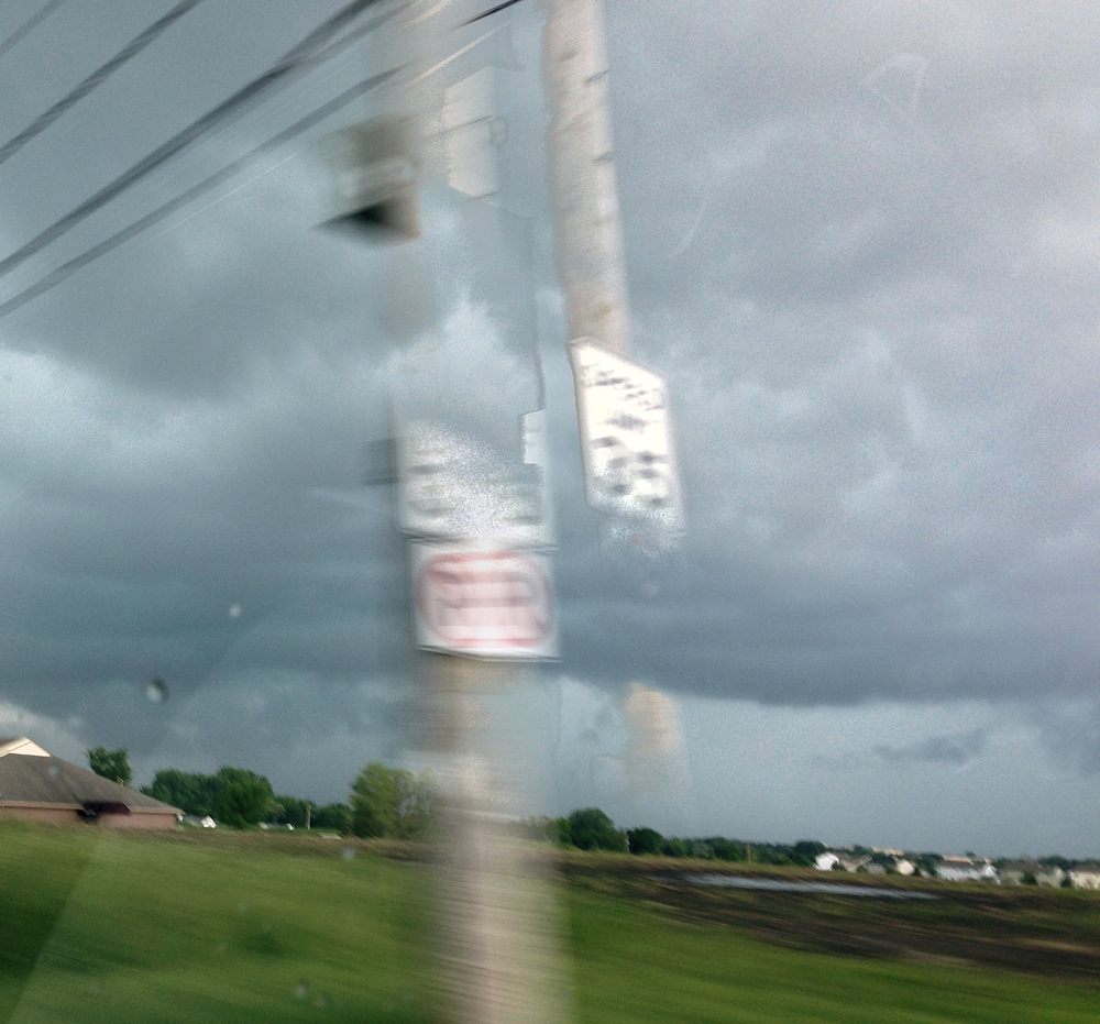 On our way home to Des Moines, the skies darkened and our smart phones kept sending us flood and severe thunderstorm warnings. Apparently, we missed most of the bad weather while we were away, but were greeted by rain as we entered the outskirts of Urbandale, where we live. That’s not a bad photo below, by the way, but instead what hard rain looks like from a moving car when you snap a picture!