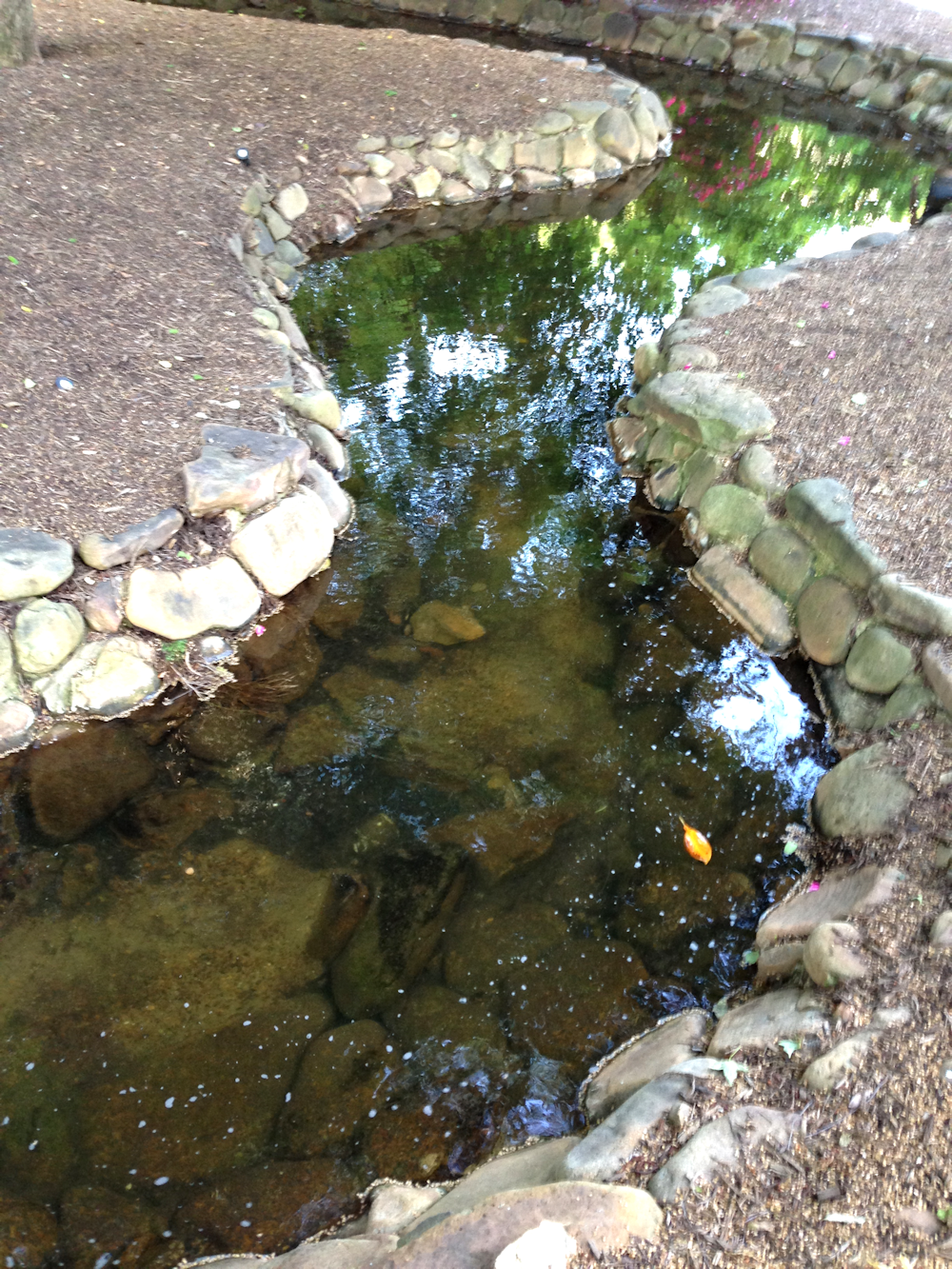 We also knew that we’d be taking a long walk after dinner. We spent the next two-and-a-half hours wandering through the downtown/campus area, which is really lovely. The temperature was 82 degrees, and the humidity was in the low 40s. Who could complain? Market Square, the local pedestrian shopping district, sports a city park next to it called Krutch Park. The park, with its gentle stream, play water fountains, flowers and shrubs, is the result of a bequest left by Charles Krutch, a photographer-turned-benefactor who worked for the Tennessee Valley Authority. When he died in 1981 at the age of 94, his will stipulated that $1.3 million be used for “a quiet retreat with trees, shrubs, flowers, and other planting for the pleasure and health of the public.â€