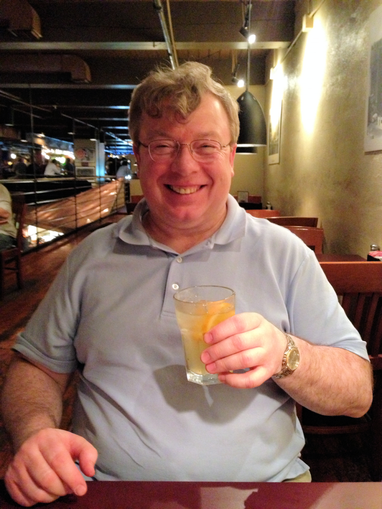 When we arrived in Knoxville last week Monday, very few Destination Imagination® (DI) teams had arrived. For the most part, it was Instant Challenge Head Appraisers and Affiliate Directors who checked into the downtown Hilton Hotel on West Church Street. After we got our identification badges and officials’ shirts, we took advantage of the unscheduled time to have dinner at the Downtown Grill & Brewery on South Gay Street. If you enjoy craft-brewed beers, then this is the place for you. And even if you don’t drink (which pretty much describes me), you’ll love the copper-and-mahogany bar and the hardwood floors that create a warm, casual dining ambiance. The food is appetizing and filling, and the service is great. From the look on John’s face, you can see he is having a good time.