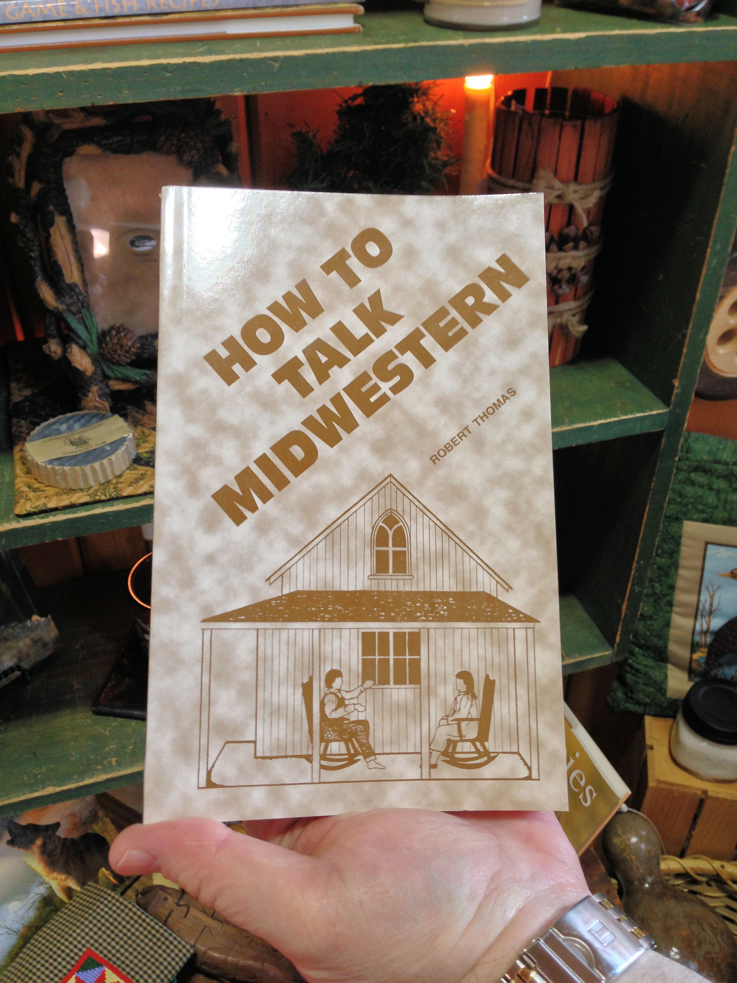 I was amused by the book below and must admit that some of the expressions in How to Talk Midwestern do not sound altogether unfamiliar. Most Midwesterners won’t cop to speaking with a so-called accent, but I realized after relocating from southern California back to the Midwest (where John and I grew up) more than 20 years ago that we have a distinctive pattern to our patter, along with some interesting expressions that are not used elsewhere. Do you know what it means to live in the “boonies?” Did you know that a “guy” can mean anyone of any gender or age? That a mush mellon (or muskmelon) is a canteloupe, or that Monkey Ward is another name for the store called Montgomery Ward? (Does that store even exist anymore?) Did you know that Midwesterners sometimes swallow their vowels or consonants, saying “Floorda” for Florida, or “eve-nun” for evening? Natives of Milwaukee, where I was born, pronounce the city’s name as “M’WAW-kee,” eliminating the “l.” Many Iowans refers to their state as “AH-wah,” eliminating the “i,” or “EYE-wah,” eliminating the “o.”