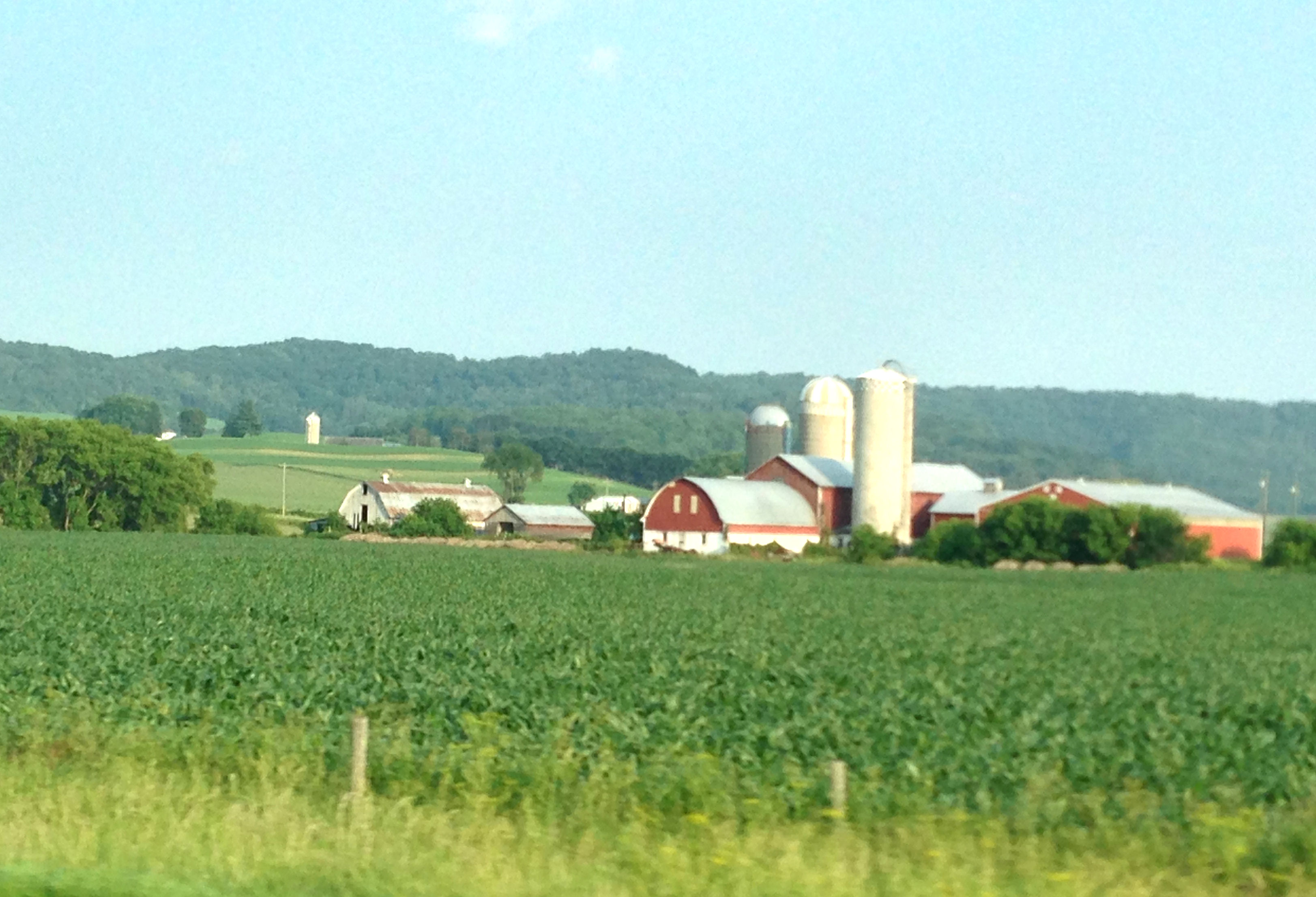 Opposite Dresbach, on the other side of the Mississippi River, is LaCrosse, Wisconsin. As you drive along the highway, you continue to see farmland. One farm is prettier than the next, and in the background loom forested hills.