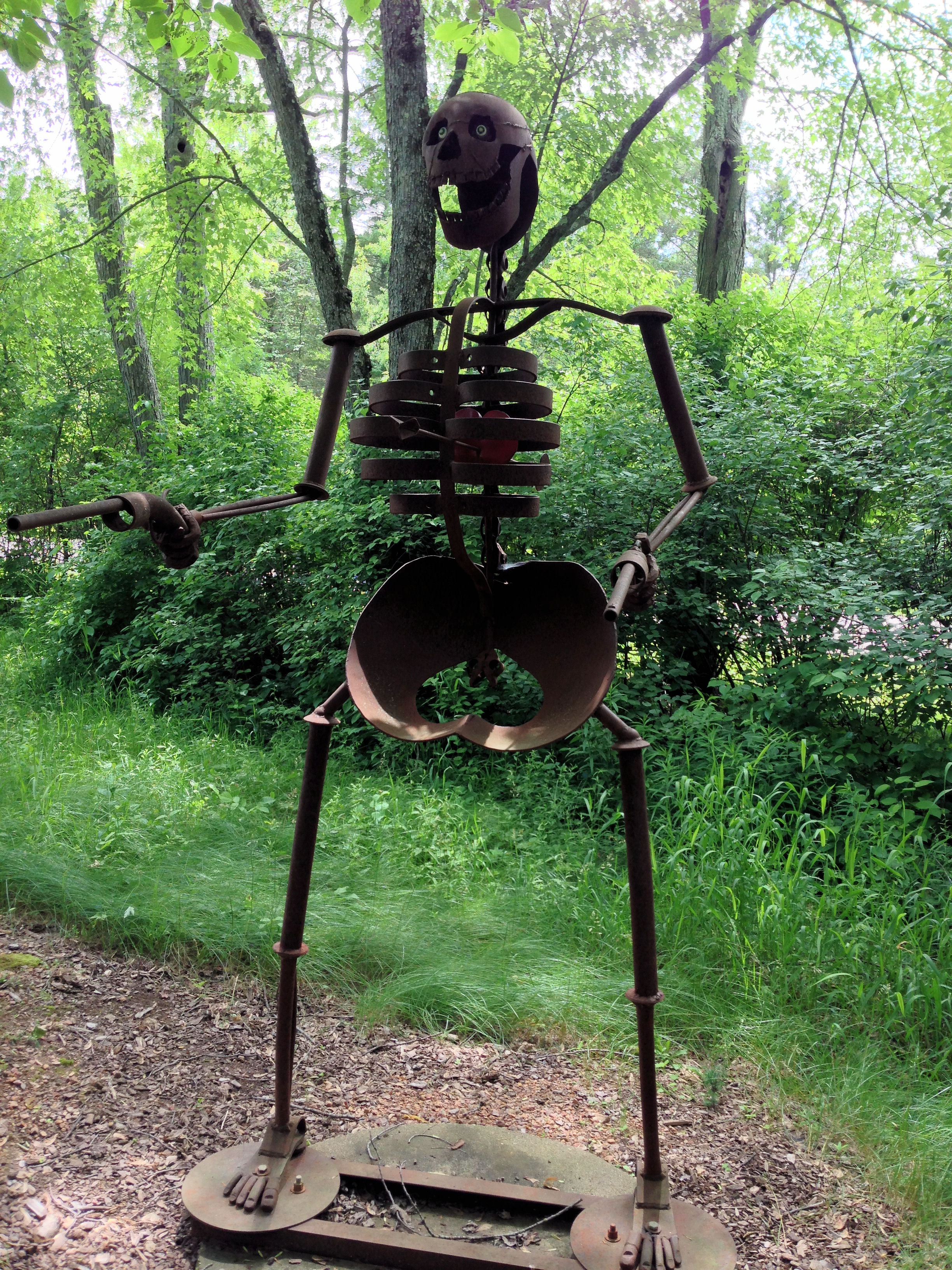 So, what is Jurustic Park? If you ask Clyde, he’ll tell you that the park is an outdoor museum about the Iron Age creatures that once dwelled in the MacMillan Marsh near Marshfield. These ferrous metal creatures became extinct when farming and industry moved into the area in the mid-1800s. He’ll explain that he is an amateur paleontologist who is resurrecting their memories by creating replicas of them. His Web site explains further: