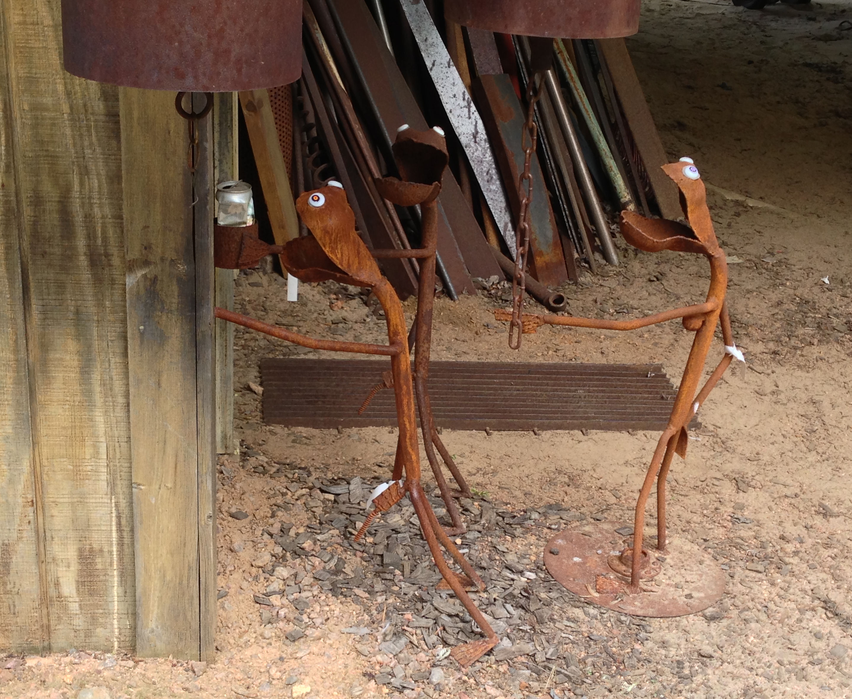 Above all, Clyde is a masterful storyteller and enthusiastic tour guide as he introduces many of the characters in his sculpture garden, infusing each anecdote with his special brand of humor. There are the frogs, for example, who haven’t figured out where the indoor plumbing is located. Behind them stands Clyde’s wife, scolding them with her finger.