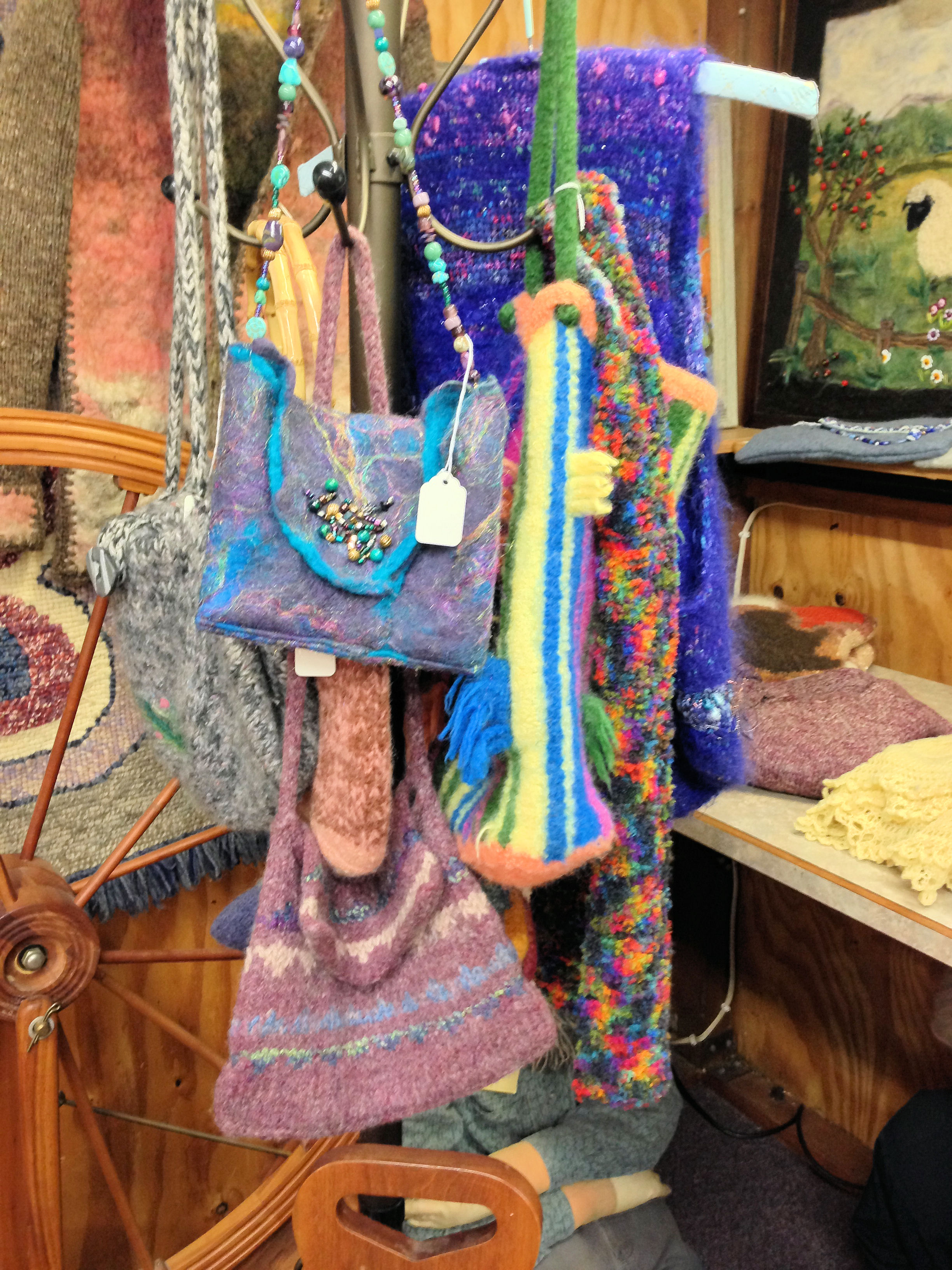 Nancy has a spectacular collection of felted wool bags she has created, too. None of the bags are alike.