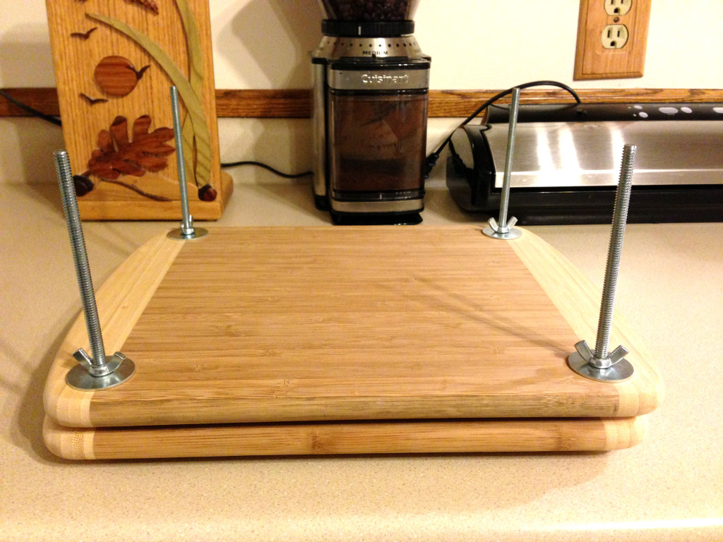 That cutting board press is brilliant! And I see the acrylic display rack is in use! Seems that we talked about that some time ago!