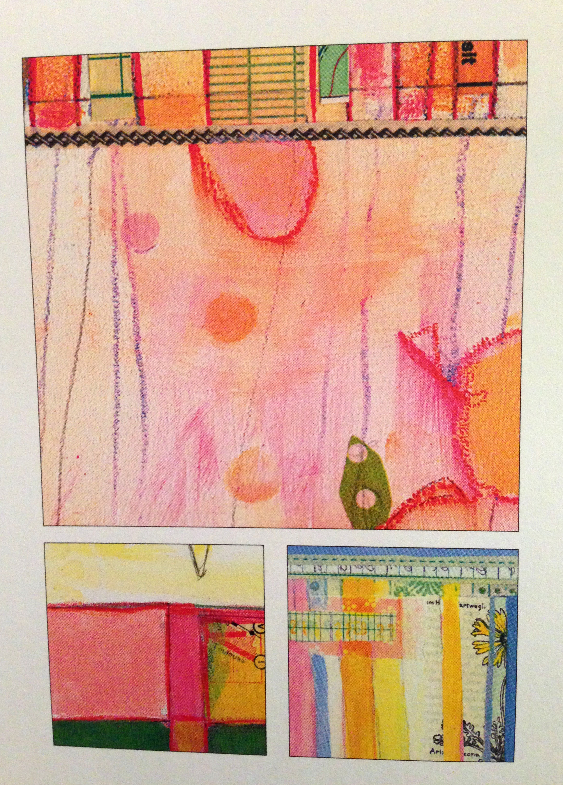 The book is filled with fun suggestions for how to play with different techniques, such as composition. Sarah suggests you scan or take a photo of one of your paintings, then zoom in on the image using your preferred graphic editing software. Crop part of the painting that speaks to you, and save it, using it as a background for collage work.