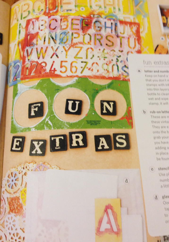 Sarah also suggest some fun “extras” you may wish to add to your creative playground, such as letter-and-number rubber stamps, rub-on letter sheets, stencils, and glassine envelopes.