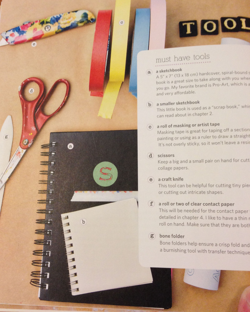 2. this is a great workbook to get my art journaling kick-started. I’ve been only using my journal in a calendar mode – I like the idea of getting a sketch on a page and then translating it into a full fledged painting. Always nice to know what supplies you need {:-D