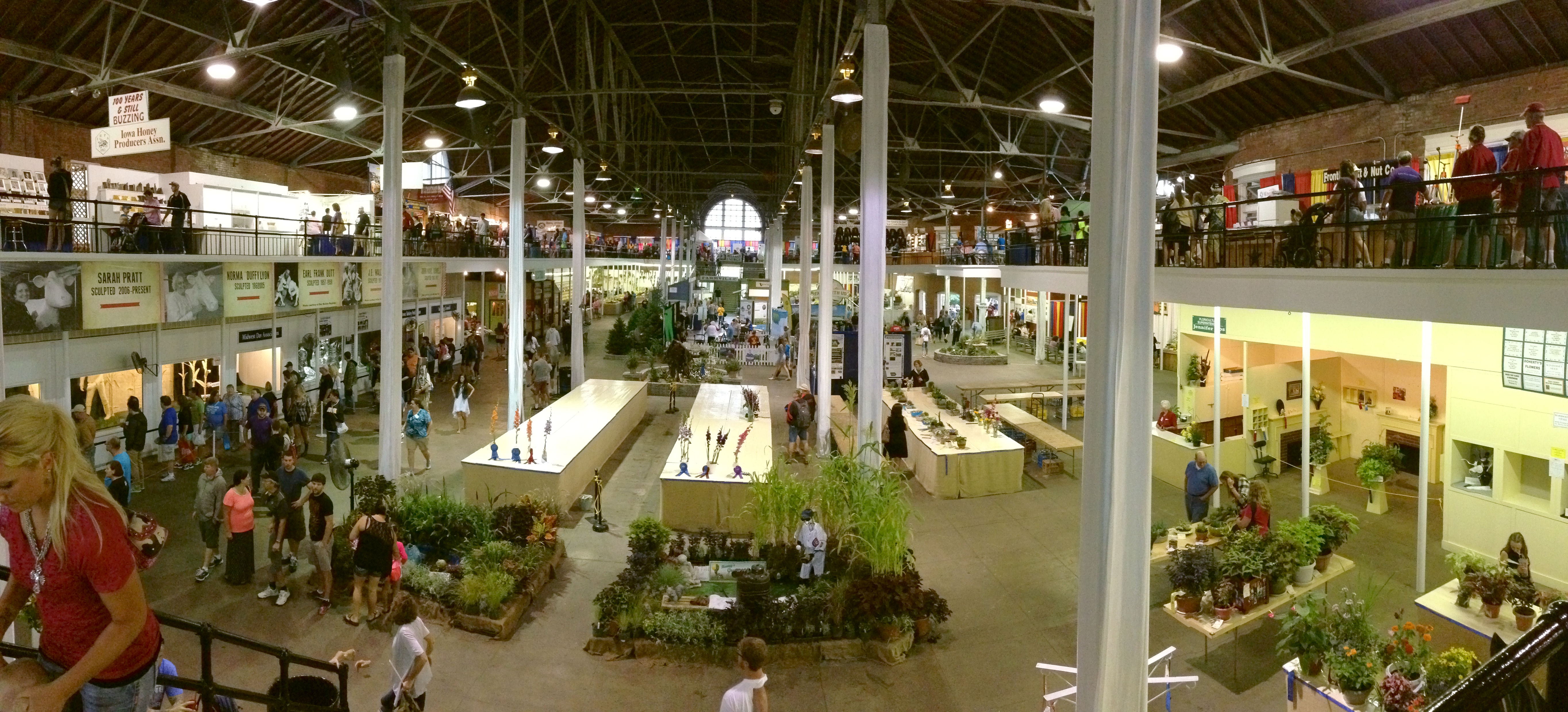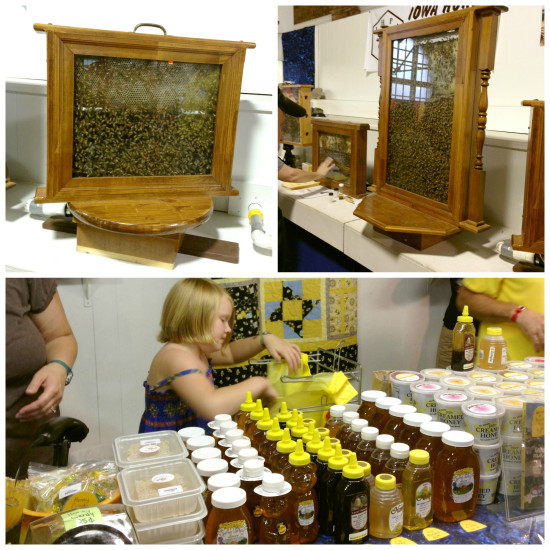 The Agriculture Building bustles with activity, which is apparent from the photo below. The second floor is not a full floor, but instead a railed walkway that rings the perimeter of the building with educational booths about soybeans, butterflies, beekeeping, and other topics, and vendor booths that sell Iowa-made jams and jellies, nuts, cooking tools and cleaning products.