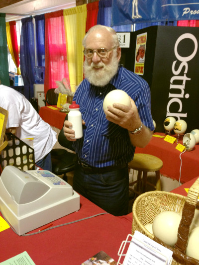 One of the booths was staffed by a gentleman who sold ostrich eggs and offered ostrich egg recipes. If you have never seen the shell of an ostrich egg, it’s sturdy, thick and shiny.