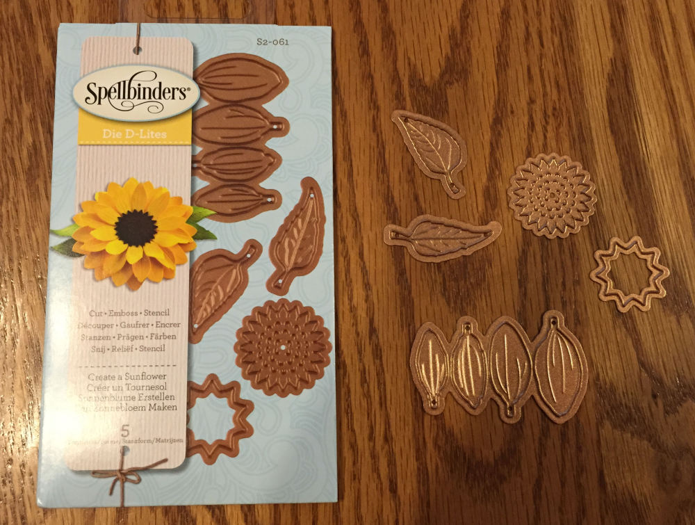 When I visited my local Jo-Ann Fabrics store yesterday, my intent was to locate DK-weight yarn for a shawl I’d like to crochet for myself. Unfortunately, I couldn’t find a single skein, but fortunately, I passed the scrapbooking aisle where I couldn’t resist parting with some cash to purchase a Spellbinders flower-making die, specifically the Create a Sunflower Die D-Lite, released earlier this year. Jo-Ann’s just added these die templates that allow you to craft a paper flower, and they seem to be flying out of the store, based on all of the empty peg hooks I observed.