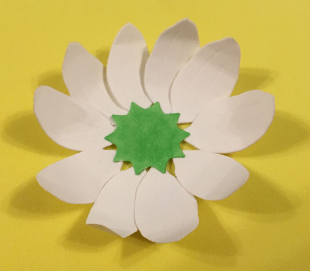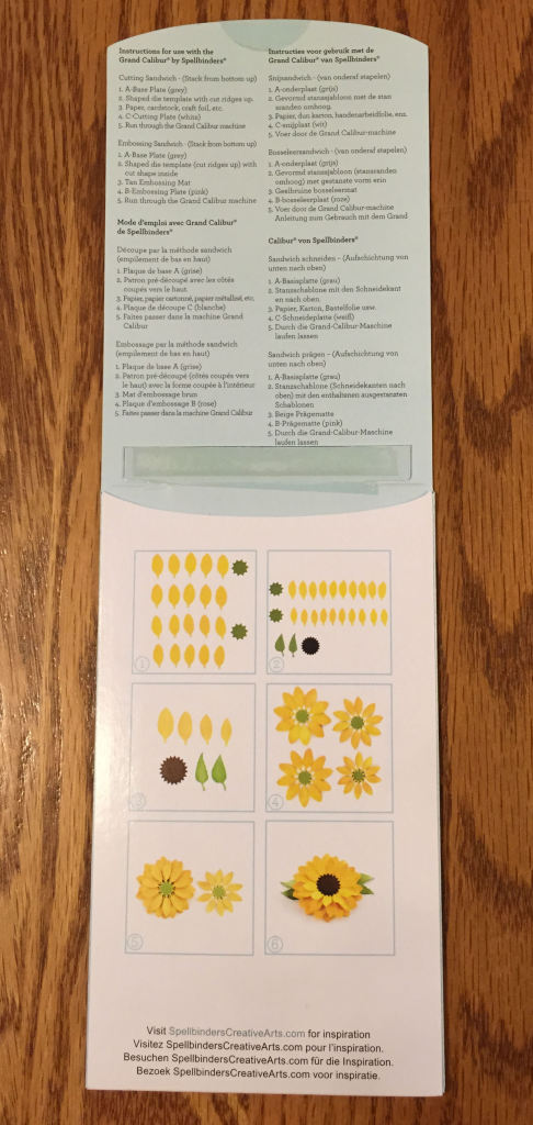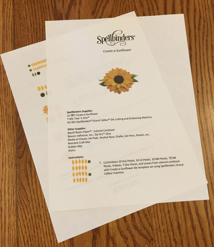 The diagrams provided with the flower-making kit don’t provide assembly instructions, but you can download step-by-step instructions from the Spellbinders site, and modify things as you wish. Click on the image below to download the Create-a-Sunflower instructions.