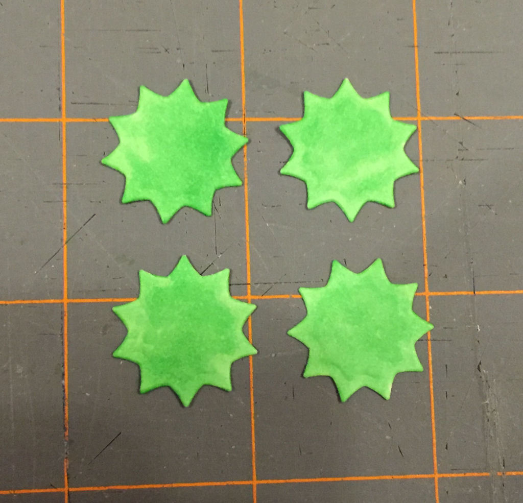 I noticed that the flower bases in the instructions were green, but I had cut mine out in white because I didn’t have the right shade of green paper. Easy to fix! I simply colored the paper.