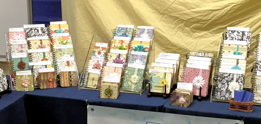 I made a mistake, however, when I first priced my handcrafted books. I inserted a bookmark-style price tag between the back cover and last page of each book because I didn’t want to use adhesive labels that could be difficult to remove. The height of the price tag obscured the book immediately above it, and/or fell out of the book when people flipped through the pages. The overall result was that people seemed afraid to handle the books and look at them. Not good for sales! As soon as I noticed this, I removed all of the price tags and trimmed them to create small signs I taped to the display racks. It was remarkable how quickly the browsing behavior of my customers changed. The lesson to be learned here is that you don’t want to make your customers work too hard to ferret out information about your products. Make the signage simple and easy to locate. And always bring scissors and tape!