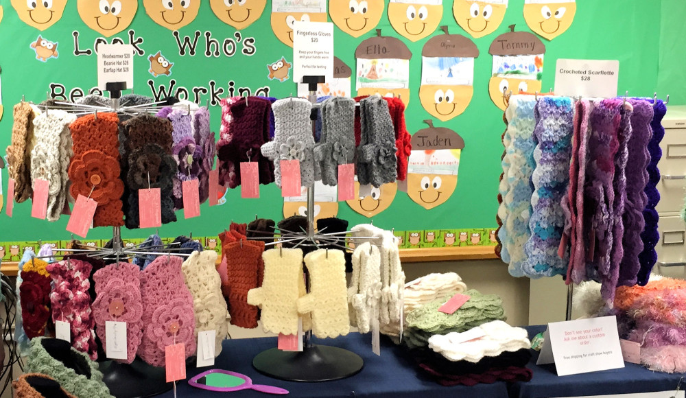 I don’t typically sell at craft fairs during the first three quarters of the year. Many retail sellers make the most profit during the fourth quarter of the year, so I use that as my cue for when to schedule craft fairs. I’m open to a trial spring or summer show, however, if the situation is appropriate. Because one of my product lines is seasonal (winter scarves, gloves and hats), it is not a good match for a warm-weather show. In contrast, I’m still learning about what might be the best time of year to sell my handcrafted books. I sold them locally at a craft fair this past year in side-by-side booths that wrapped around a corner—one for my crocheted accessories, and the other for my books. Results were inconclusive. If I had not sold both types of products at this show, I am not sure I would have done well enough to justify selling the books. I will have to try again, and see what happens.
