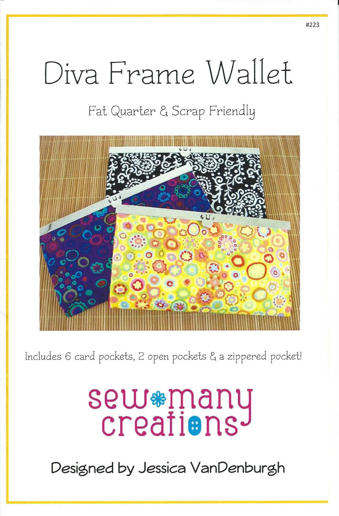 I fell in love with the Diva Frame Wallet, designed by Jessica VanDenBurgh of Sew Many Creations. This super-skinny wallet can be sewn with more formal fabrics or fun prints for a more casual look. It utilizes an eight-inch wallet frame, which is available from Amelia’s Garden.