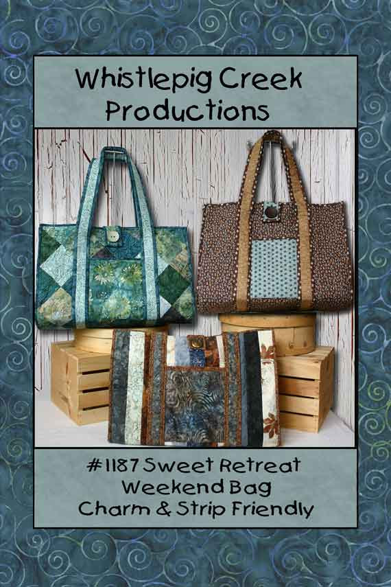 Susan Marsh of Whistlepig Creek designed a Sweet Retreat Weekend Bag that is the largest retreat bag I have ever seen. I can imagine taking this bag to a craft show, filled with purchases if I’m a buyer, but with my own products if I’m selling and doing booth set-up. If you like sewing with charm packs or jelly roll strips, you can incorporate them real well using this pattern.
