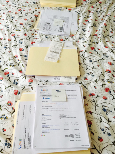 Uh….yeah….I use the “I’ll just put this somewhere to get it out of my purse in a hurry” method. It’s funny because when I started my shop, I had a spreadsheet and I input things in it frequently. Then real life happened and now things are kind of a mess. I do have a specific place for the really important documents, but receipts end up kind of everywhere.