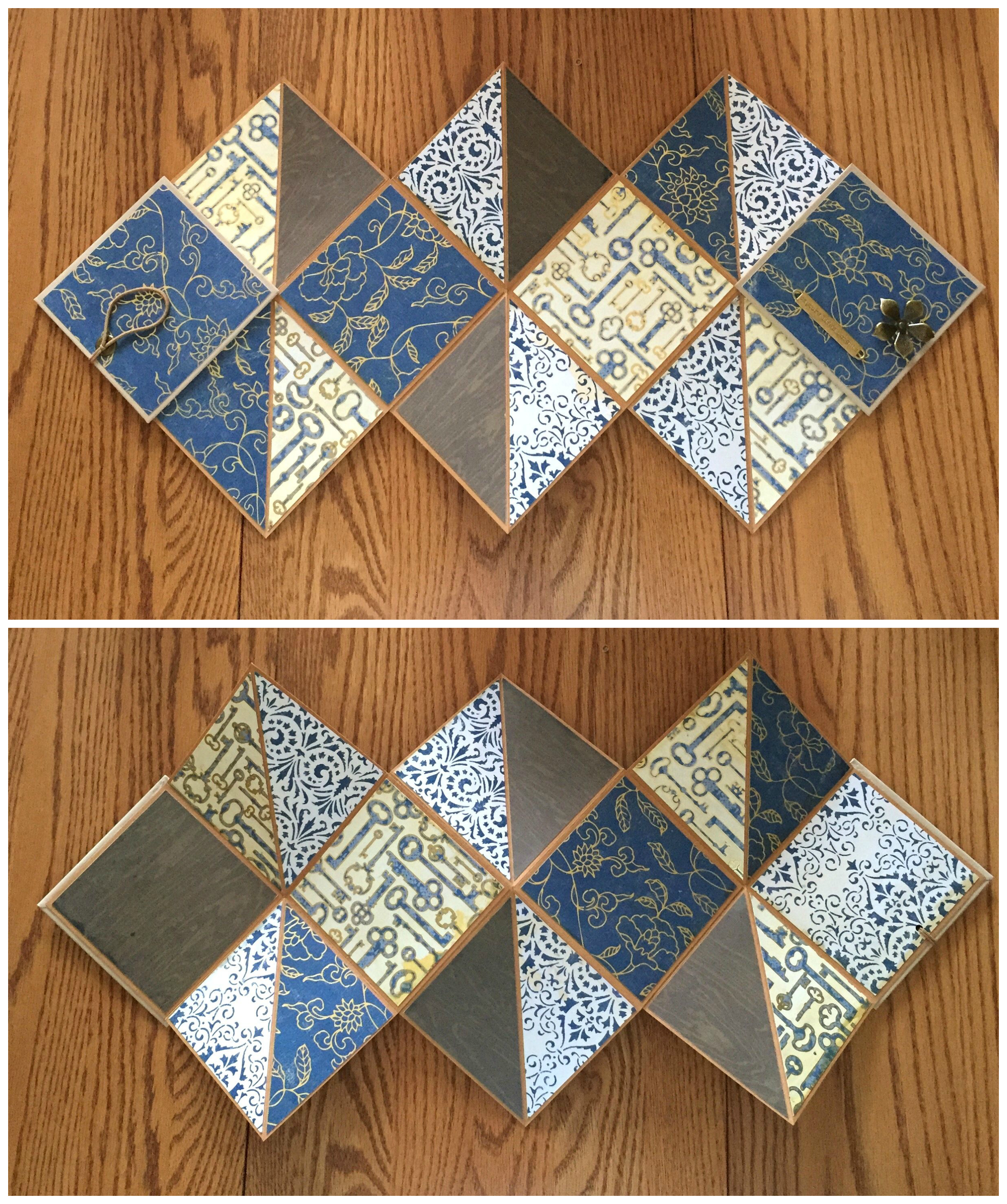 Except that this book opens up completely, like an explosion, and occupies some acreage when the “pages” are spread out. I decorated both sides of the book.