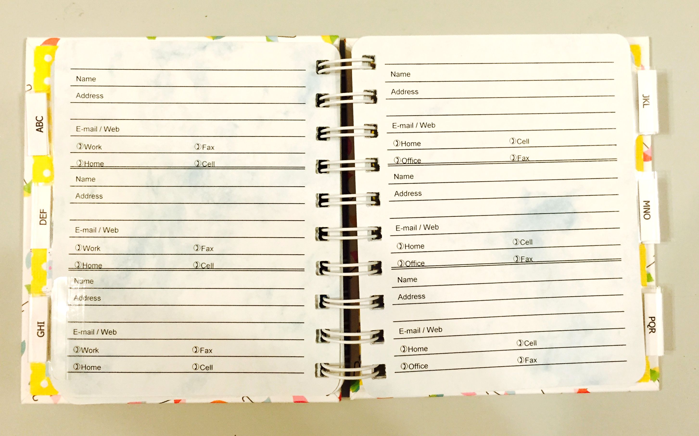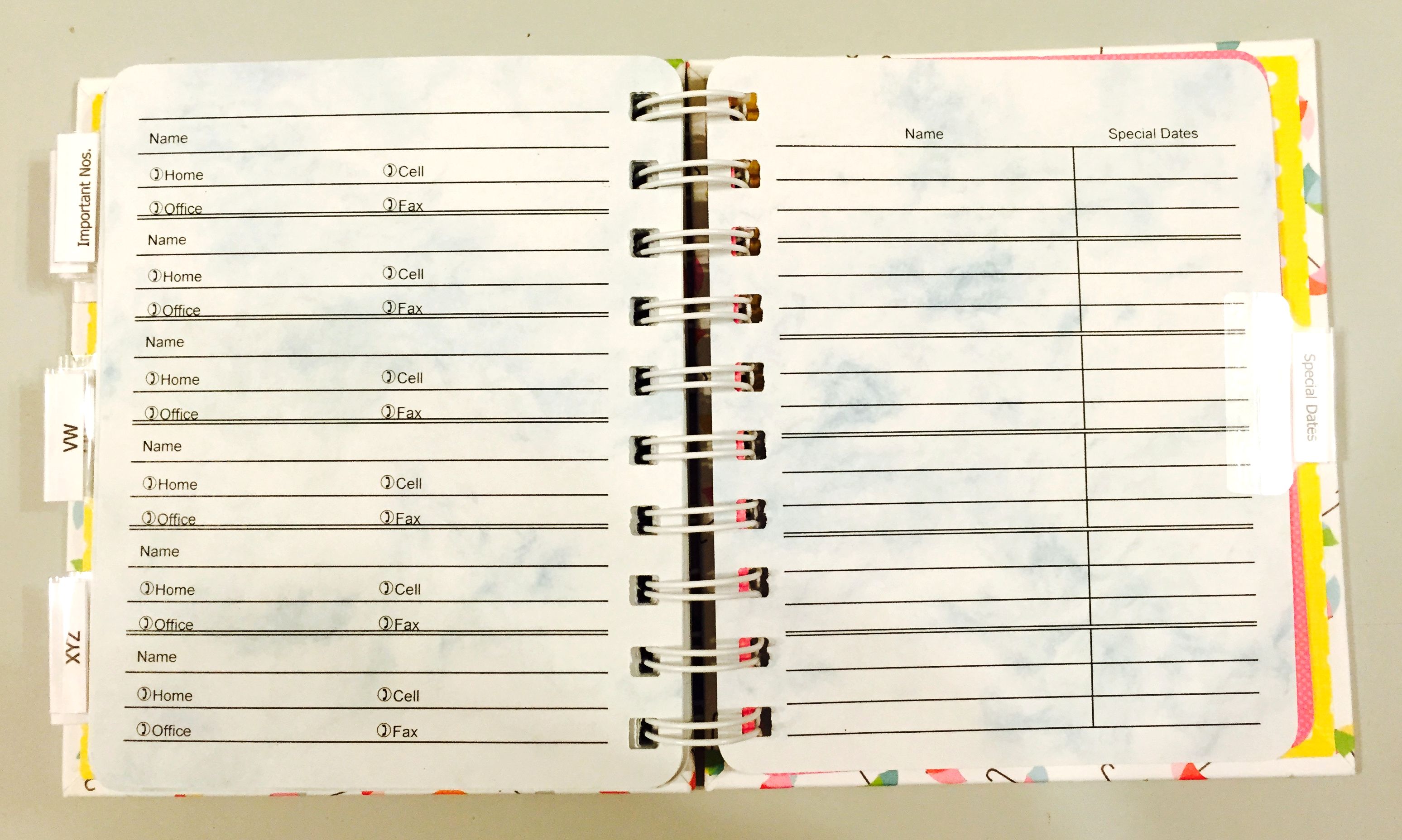I added two new sections to the back of the address book: one for important numbers, and the other for special dates.