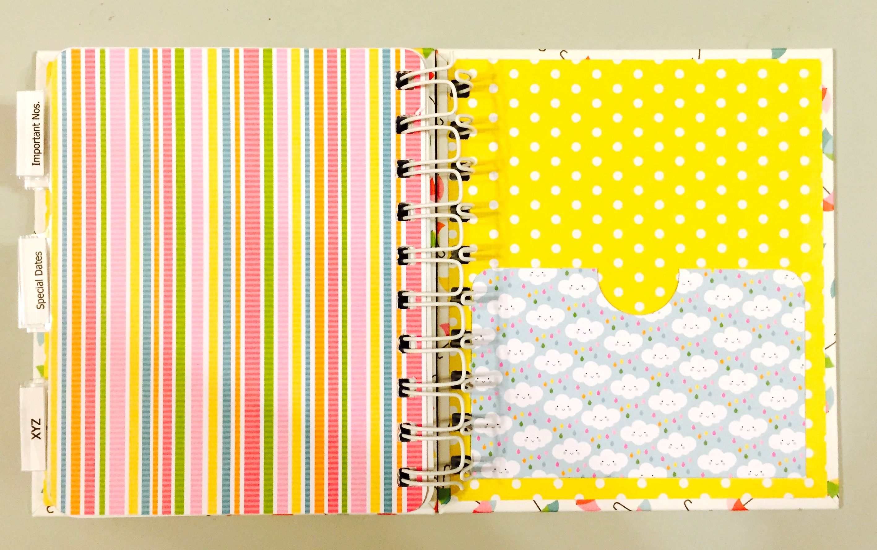 1. What a GREAT response to the challenge! I love the little rainbow designs on the front cover — and the clouds and rainbows and wispy sky motifs inside. I’m one of the folks who can really appreciate some extra room in the address book! The two new sections will be really useful, too.