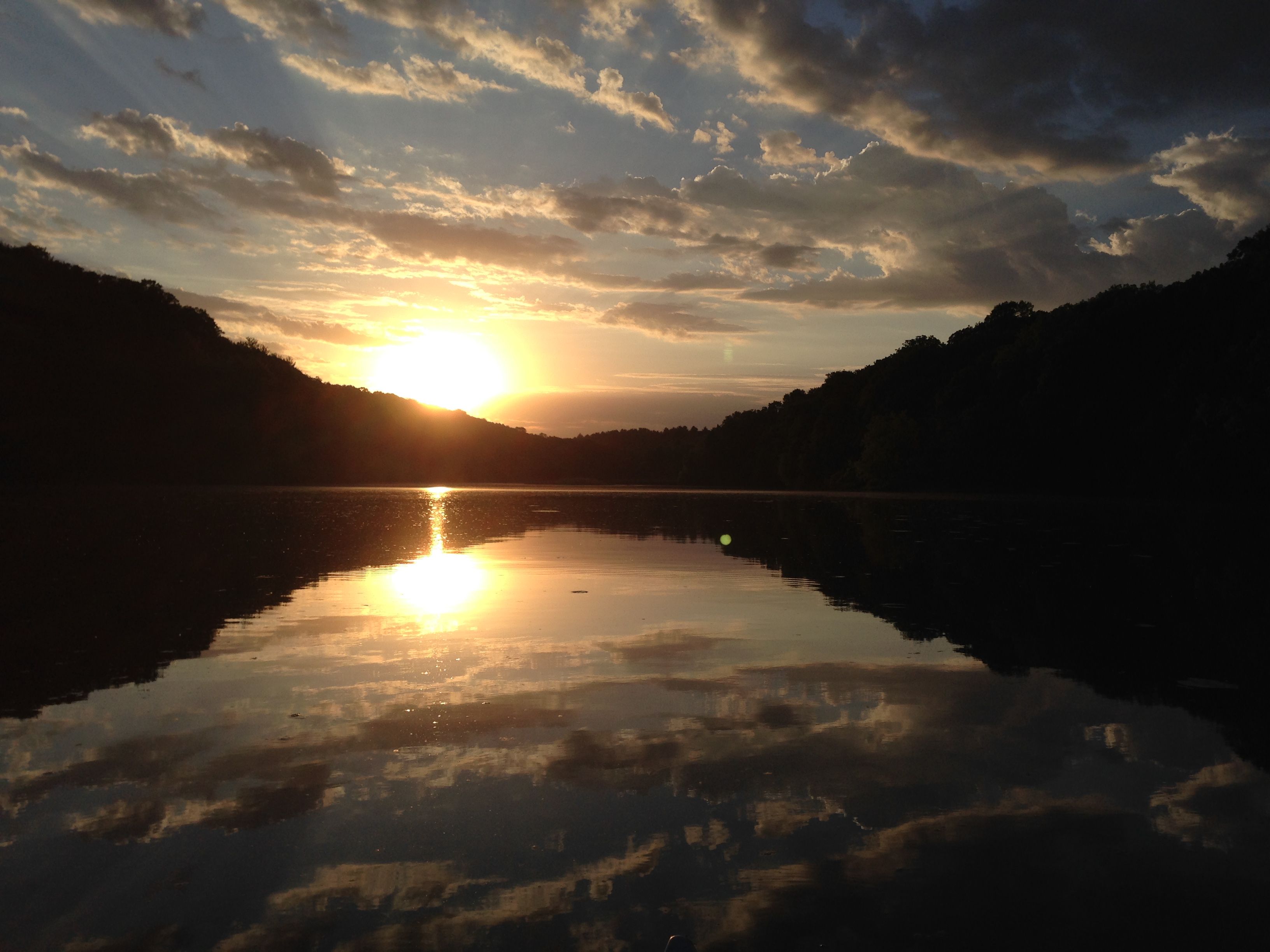 John and David paddled a canoe around sunset on Backbone Lake one evening, while I enjoyed being a passenger. Because we had never done this previously, we didn’t realize how shallow some parts of the lake are. At one point David dipped his paddle and hit bottom, pointing out we probably had less than 18 inches of water below us. It made me feel foolish for wearing a life vest, but at least I can say I was following safe boating practices. John and David sat on theirs—ha!