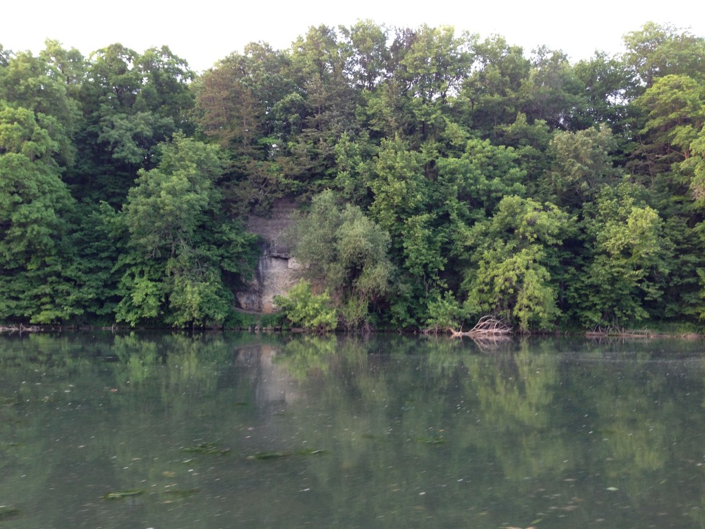 Despite the shallow water in some parts of the lake, we still enjoyed being on the water. In the photo below, you can see a rock formation against the shoreline. If you use your imagination, you can see how it resembles part of a backbone. Backbone State Park is known for this type of bedrock, carved by a loop of the Maquoketa (ma-KOH-ka-tah) River.