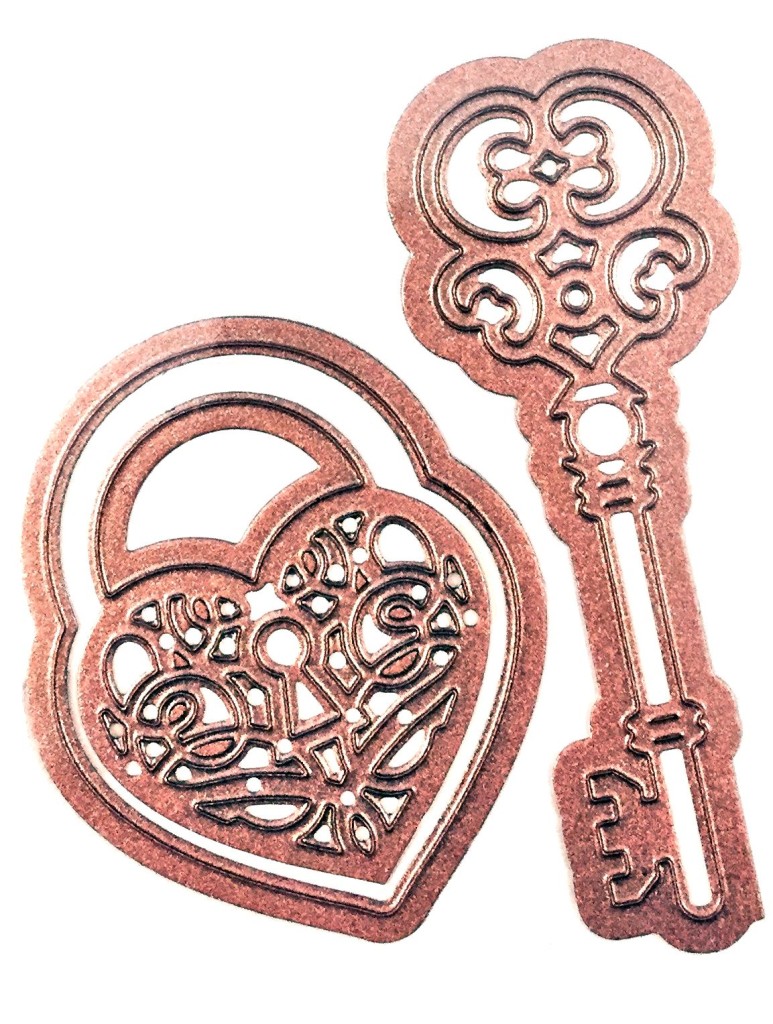 One of the traditional ways to use this die set is for a greeting card honoring Valentine’s Day, a wedding, or an anniversary. That’s what Sheri of My Sheri Cards did with the heart-shaped locket-and-key dies, cutting them from gold and silver card stock, respectively. Then she paired these design elements with a Spellbinders A2 Curved Borders One die cut for a truly spectacular effect. You can read about her process in her post, MY SHERI CRAFTS CHALLENGE #126 – Valentine.