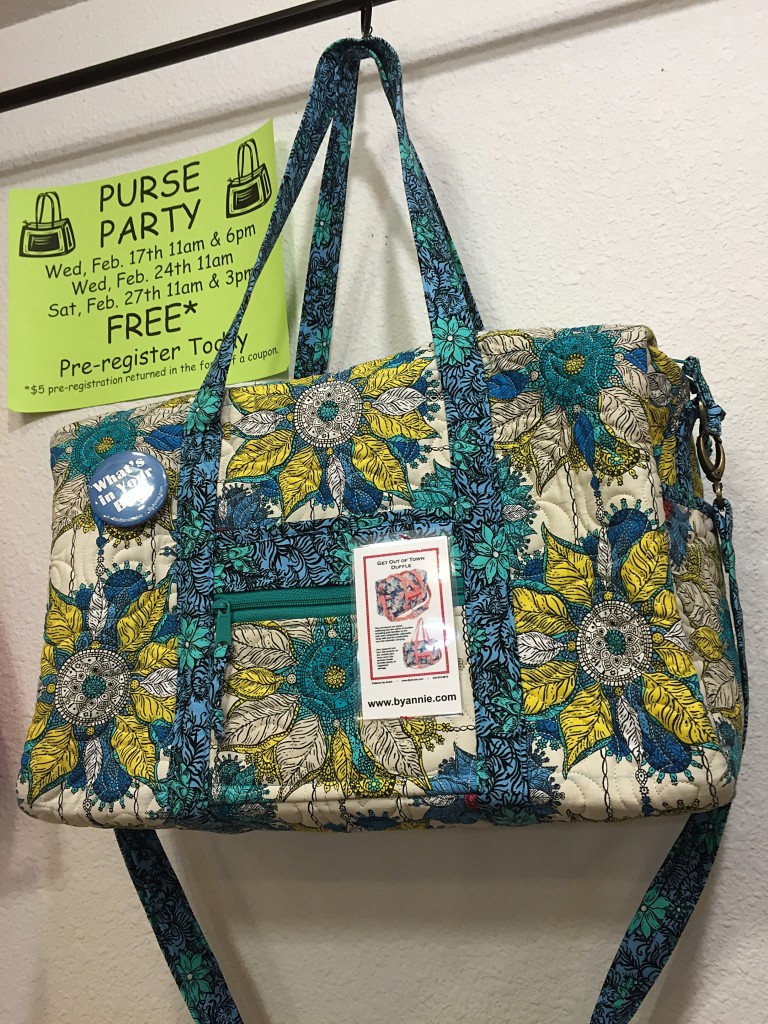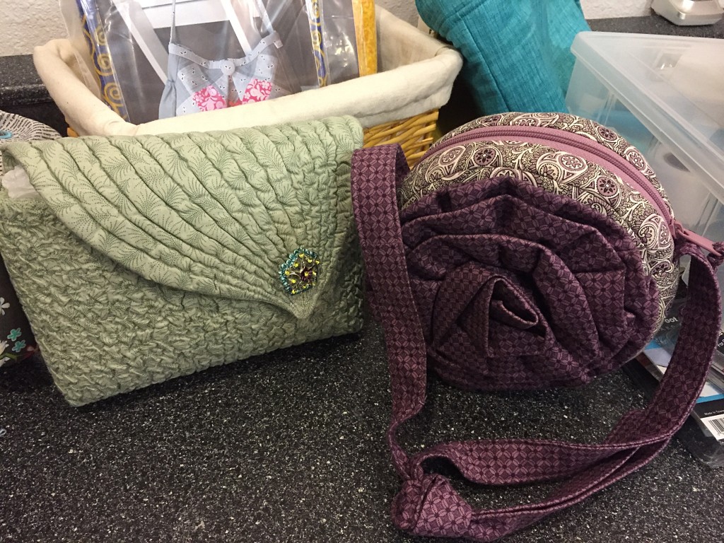 This weekend’s Purse Party 2016, especially before I begin five weeks of radiation treatments on Monday, was a welcome treat after almost six weeks of recovery following surgery for endometrial cancer. Purse Party is hosted annually by one of my local quilt shops, Quilter’s Cupboard in Ankeny, Iowa. The newest bag patterns and samples are introduced, along with some old favorites. Bag-sewing tips are shared, and tools to make your bag-sewing easier are recommended. If you’re looking for a list of bag sewing patterns to attempt, scroll down to the bottom of this post, where you’ll find a list of patterns. You can order patterns directly from the friendly folks at Quilter’s Cupboard, or online if you prefer.