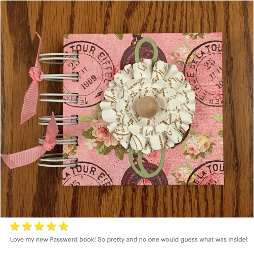A few weeks ago, a customer approached me and asked if I could make her a password book using a flower from one of my gratitude journals, but the paper from a password book. Obviously, I couldn’t take apart the two books to meet her request, but fortunately the paper she liked was a digital one I had purchased from a graphic designer who allows you to sell handmade items using her digital papers. The flower, on the other hand, was from a package I had purchased from Hobby Lobby. Not only was it no longer available, but I didn’t want to buy yet more pre-assembled flowers. I offered to re-create the flower so that it would be similar to, but not exactly like, the purchased flower adhered to the book in my shop.