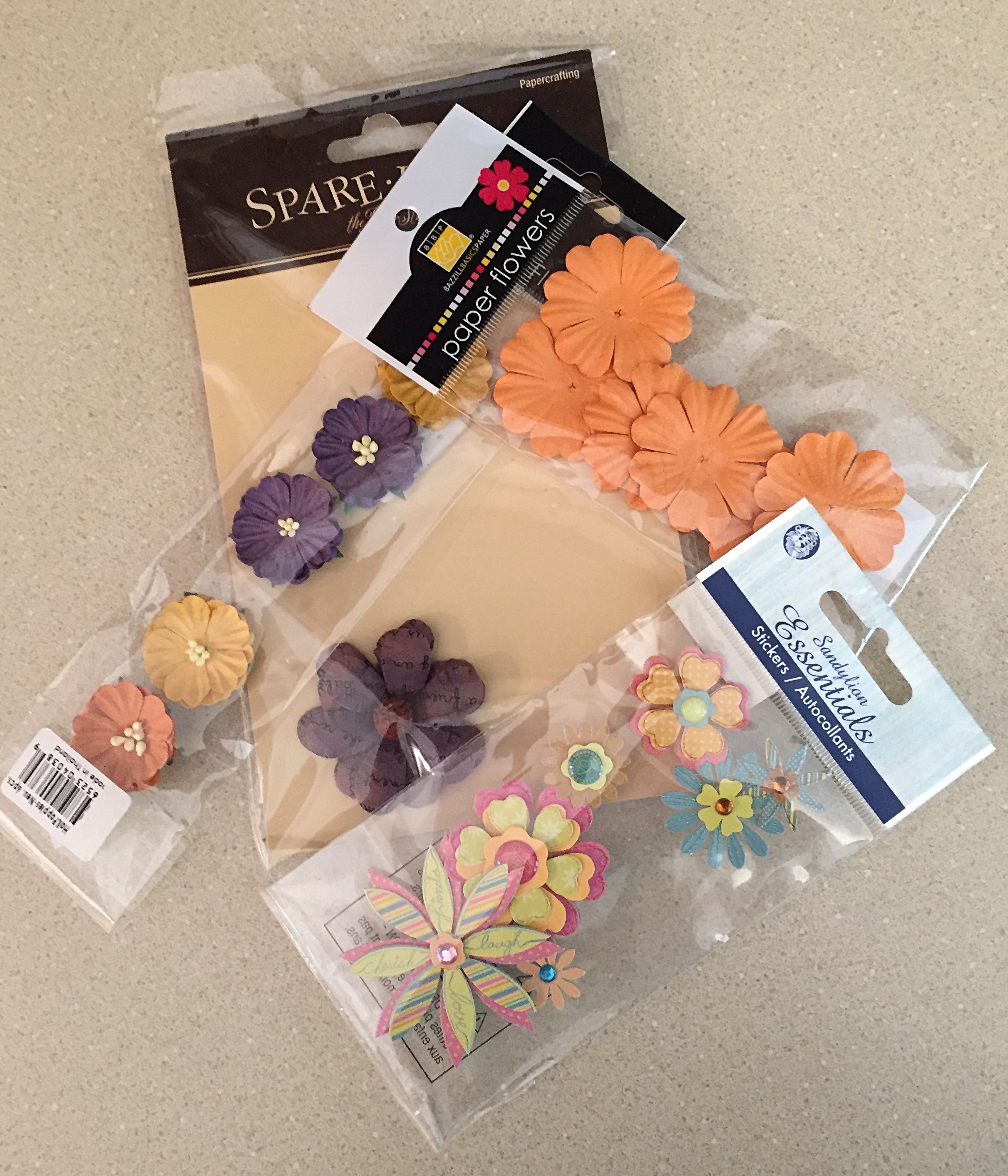 Today I most enjoy fashioning handmade flowers from paper, fabric and fibers, but I can’t justify tossing away my remaining store-bought collection. As a result, I am still working my way through the flowers I have purchased.