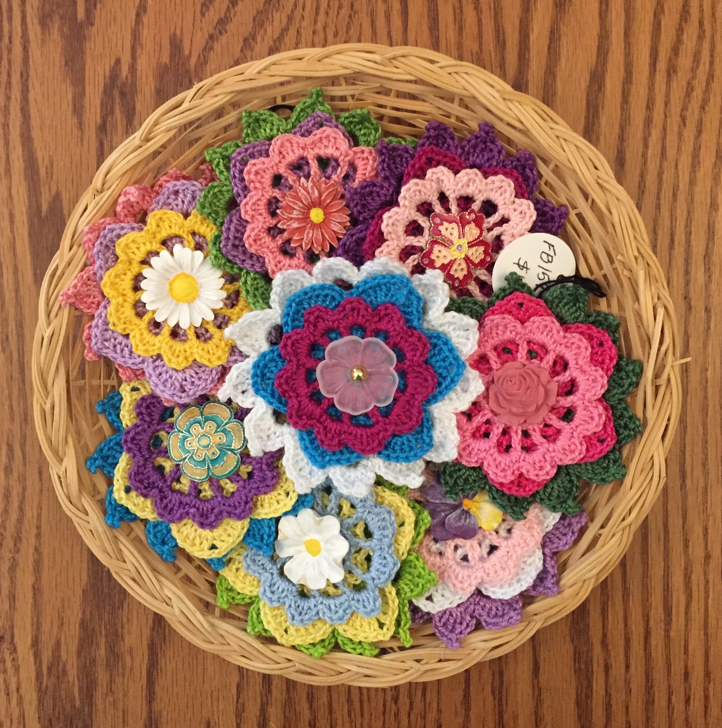 I have a black thumb, so flowers never survive around me. Nonetheless, I love blooms of all kinds, so I surround myself with flowers that won’t die—silk flowers, paper flowers, floral scents, floral-embellished bed linens, and so on. In one of my Etsy shops, JN Originals, I sell crocheted flower brooches.
