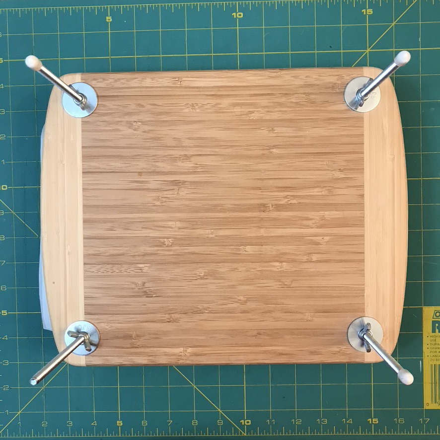 On Day 2, I folded 100% cotton papers (Southworth resume paper) into eight signatures, or sections. Then I pressed them flat in the book press my husband, John, made for me years ago. He used two cutting boards, 4 carriage screws, and 4 washers. The alternative would have been to slide them beneath a stack of heavy books for four hours, or overnight.