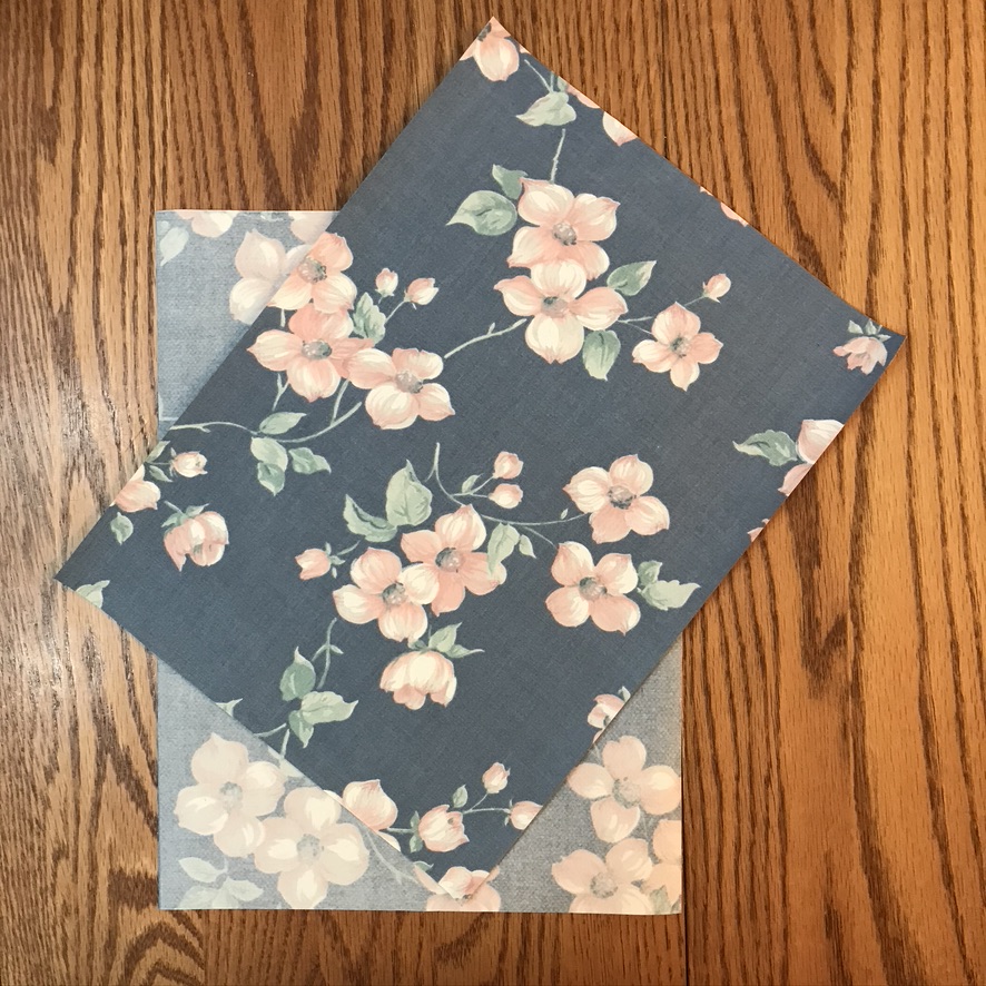 Ali’s 5-Day Journal Challenge began with gathering materials and tools, most of which were already lying about in my house. On Day 1, I fished out an old curtain valance that was no longer being used and cut it up for fabric covers. I fused it to white gift tissue using Heat n Bond Lite to make book cloth, and then set it aside. Acid-free tissue would have been ideal to use, but I used what I had.